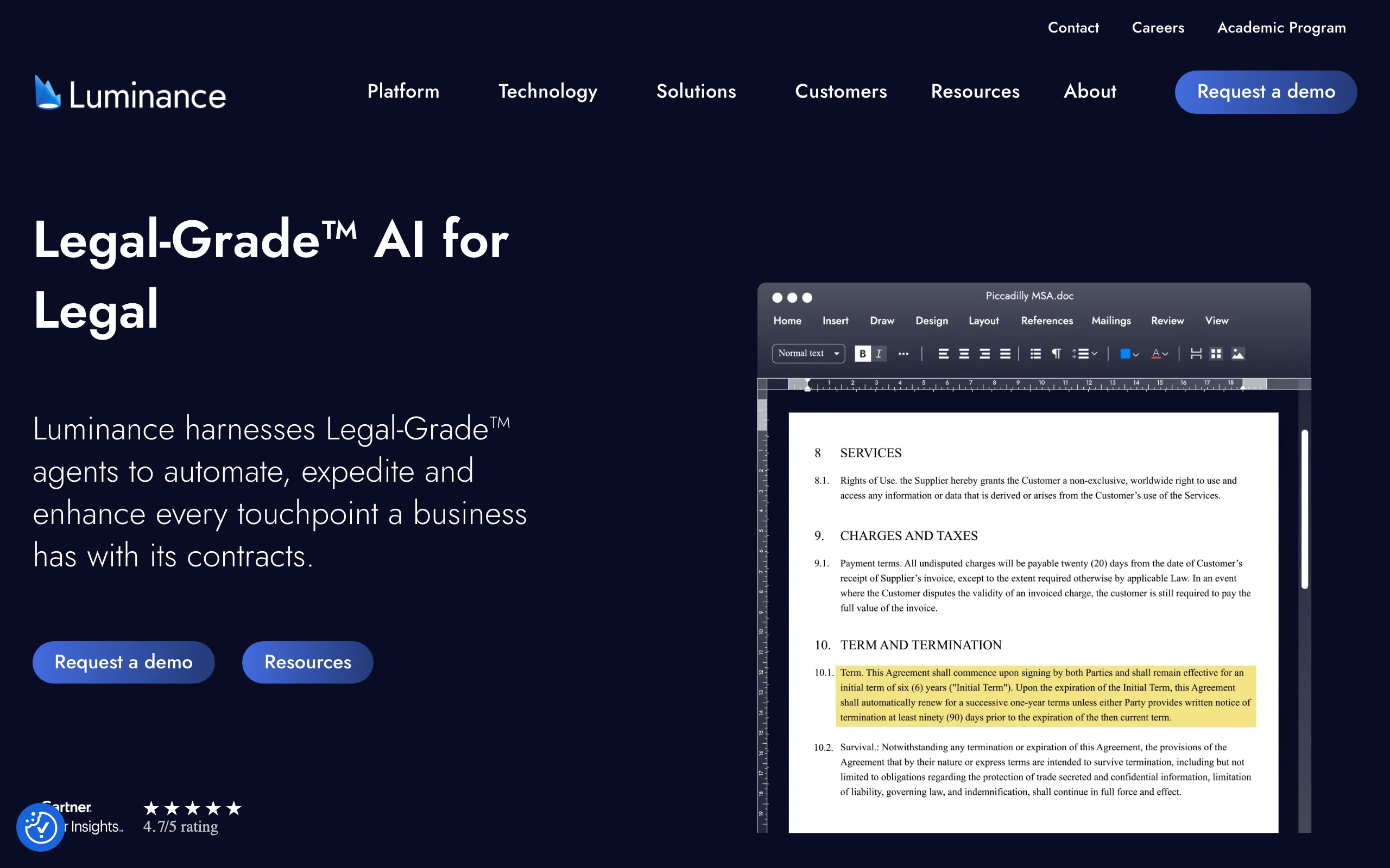 Luminance processes over 150 million documents and is used by legal teams at major enterprises. For in-house legal departments and corporate counsel dealing with high volumes of incoming contracts, Eve turns what used to be hours of redlining per agreement into a review-and-approve workflow.