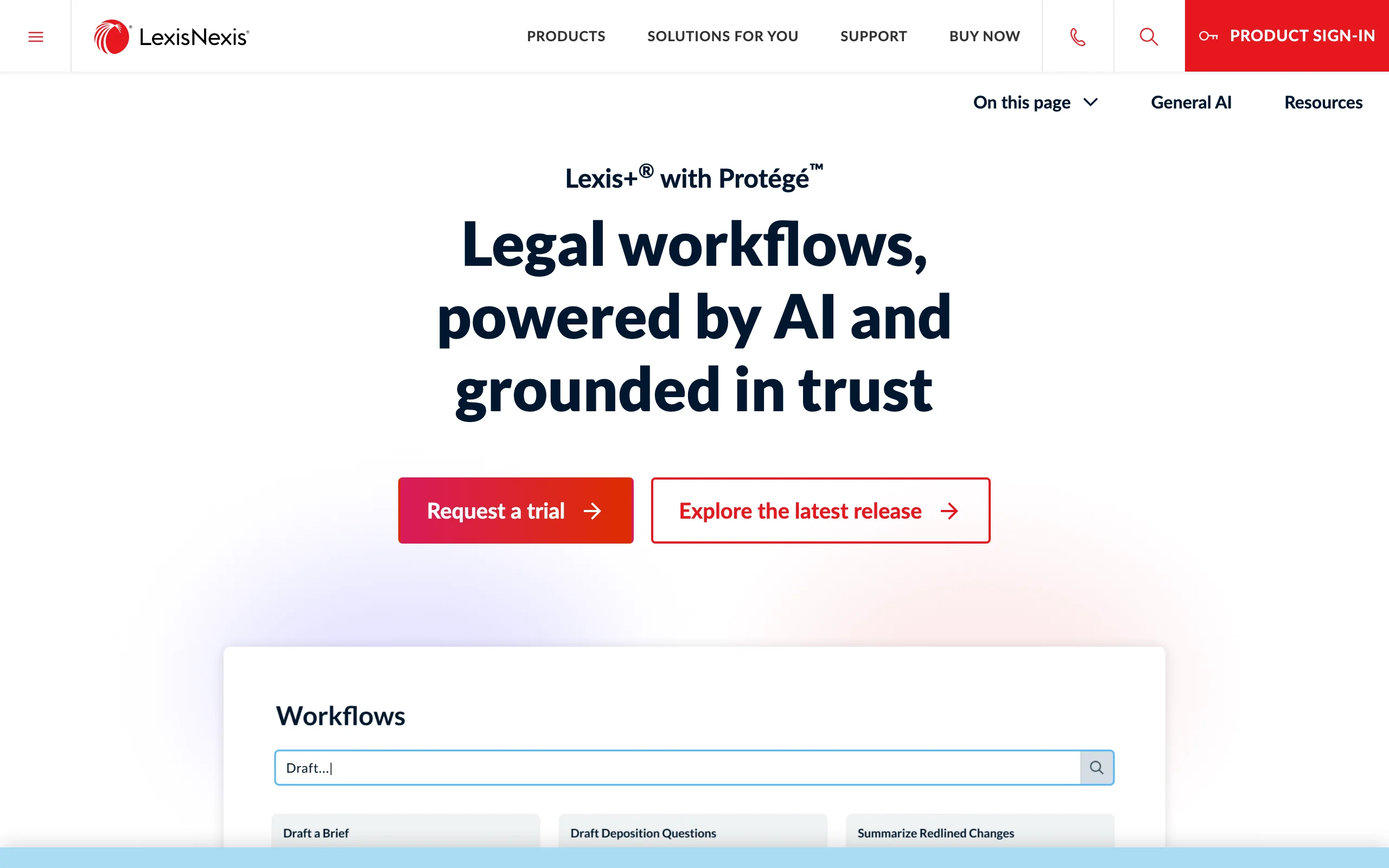 Lexis+ AI is LexisNexis's AI-powered research and drafting platform, enhanced by Protege, a personalized AI assistant for conversational search, document analysis, and legal drafting. Every answer is grounded in LexisNexis's proprietary content library and validated in real time by Shepard's Citations.