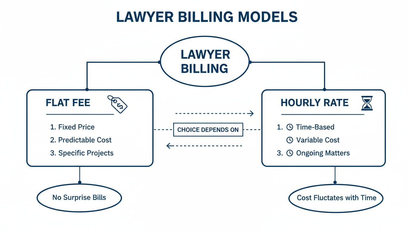 The two models you'll run into most often are the flat fee and the hourly rate. Each has its own pros and cons, and one might be a better fit for your case than the other. It’s a bit like hiring a contractor: sometimes you want a single, fixed price for the whole project, and other times, paying by the hour just makes more sense.