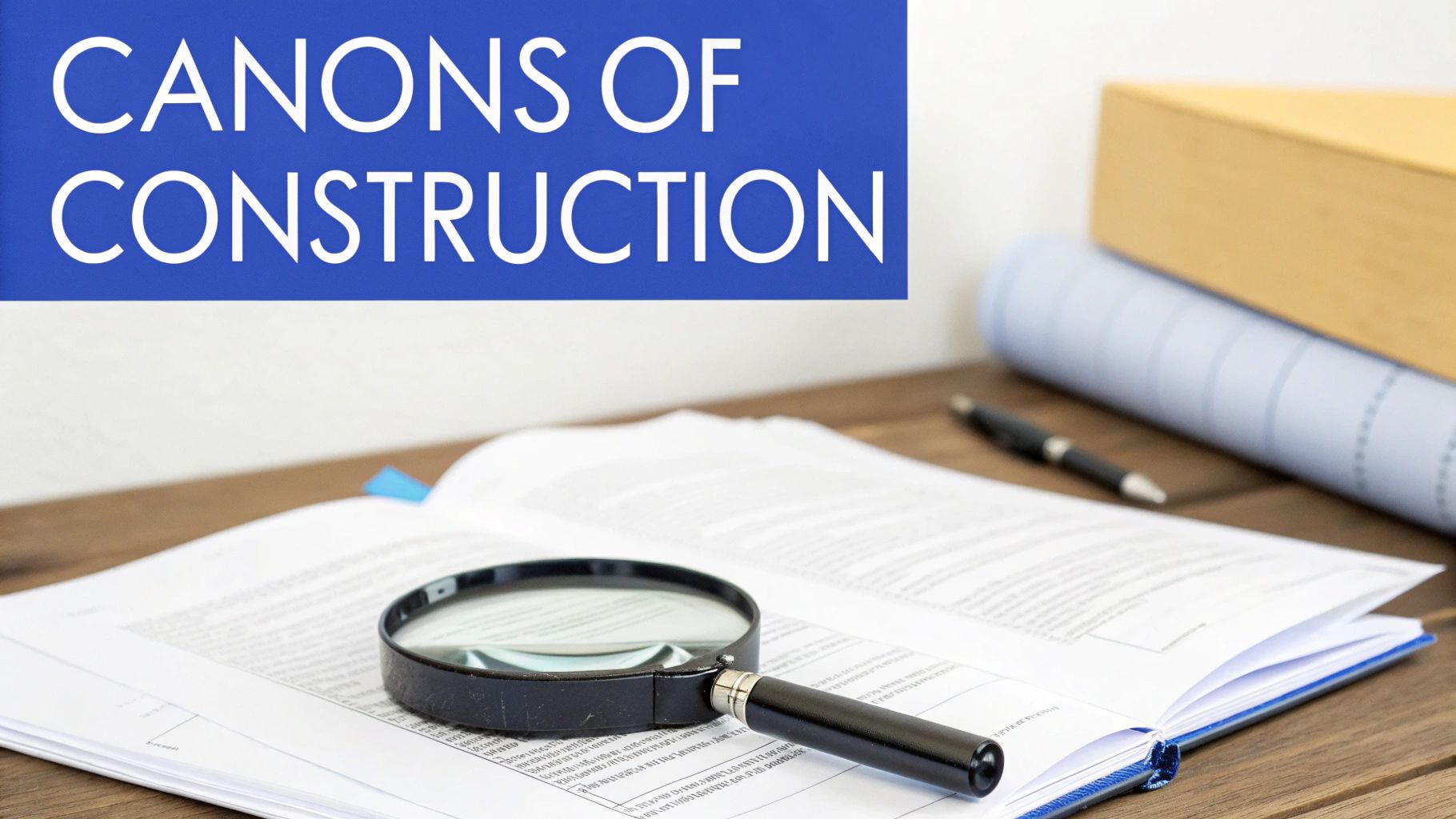 If broad philosophies like textualism and purposivism are the strategic blueprints for statutory interpretation, then the canons of construction are the real-world tools a lawyer uses on the job. Think of them less as rigid, unbreakable laws and more as a collection of time-tested guidelines and logical arguments that help you build a case for what a statute actually means.